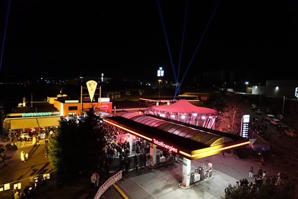 Mittendrin im Geschehen: Joko und Klaas! Die beiden Moderatoren schlenderten immer wieder über das von Winterscheidt ausgewählte Show-Gelände, kauften im Autohof-Shop ein, ließen das Auto einer Passantin an der PKW-Tankstelle des Autohofpartners TotalEnergies volltanken und genossen sogar ein frisch gezapftes Bier aus dem 24-Autohof-Restaurant.